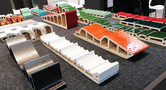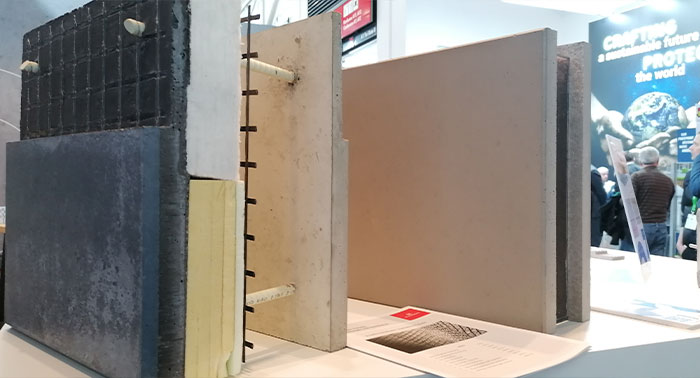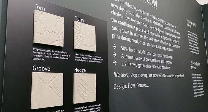 コンクリートフォームを作り、サステナビリティ素材を利用したファサードや壁面を作るドイツの会社 Reckli。2019年度にも出展していましたが、建築はアートである、ということが非常に感じられるデザイン性の高い壁面ばかり。