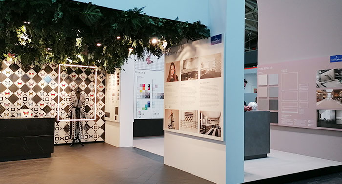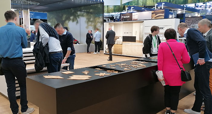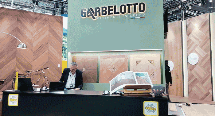 イタリアの会社Garbelottoのブースでは美しい木材の床や製品を展示。簡単に床材を装着できるClip UPシステム(特許取得済み)、またイタリアのガラスで有名なムラノ島のミルフィオリを床の一部として利用した特別感あふれる床材を製造している。 1箇所加えただけでもオフィスや自宅がゴージャスになりそう。