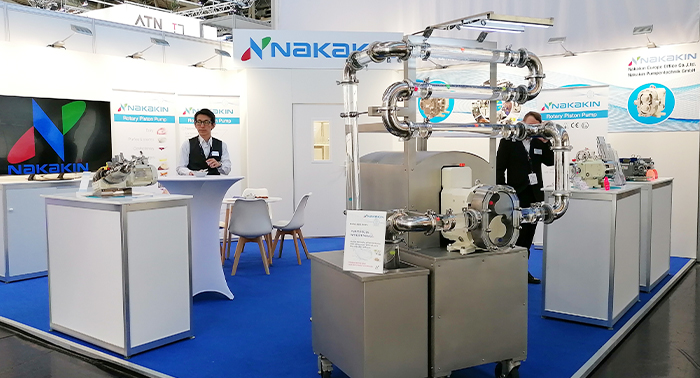 株式会社ナカキンは、固形物を含む液体の搬送に適したポンプ実機を展示。わかりやすく液体にボールを入れるデモンストレーションを行うことで、製品の特性とつよみをビジュアル化して見せていました。こういった工夫が来場者の足を止める、記憶に残ってのちに商談へとつながる可能性を残せる、のが対面型展示会出展のメリットでもあります。