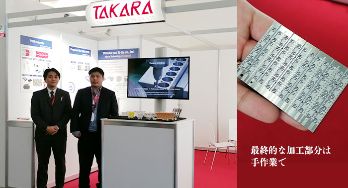 今期初出展で、欧州市場にもまさにこれからの企業・多加良製作所。 製品のひとつであるモールド金型では、均一な面圧や樹脂漏れを防ぐ設計で安全性にも優れています。 どうしても機械では完遂出来ない最終的な加工部分は手作業で行うことで、細やかな作業が可能となります。丁寧さと心配りは日本の技術者が一番、安心という日本神話を蘇らせる一歩に(最近は日本神話が揺らいでるそうなので)