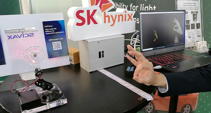 今回初出展のscivax(サイバックス)と、共同出展のSKハイニックスジャパンは、共同開発したセンシング技術を駆使したいくつかの製品を展示していました。