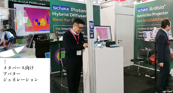 今後の新しい場としてどう発展するのか、が楽しみなメタバース向けアバタージェネレーション(センシング技術と3Dを併用)も紹介され、多くの来場者が足を止めていました。