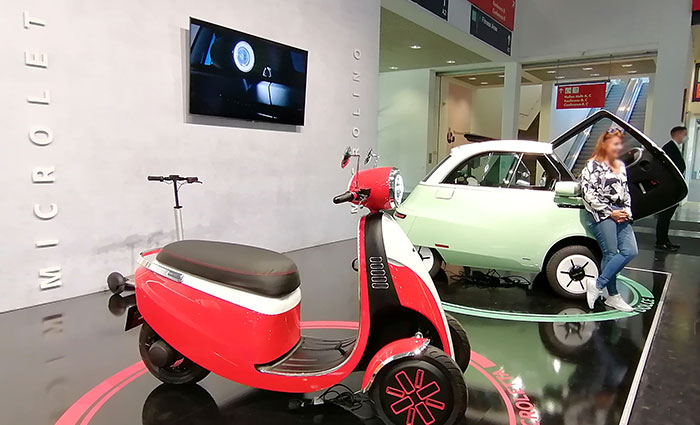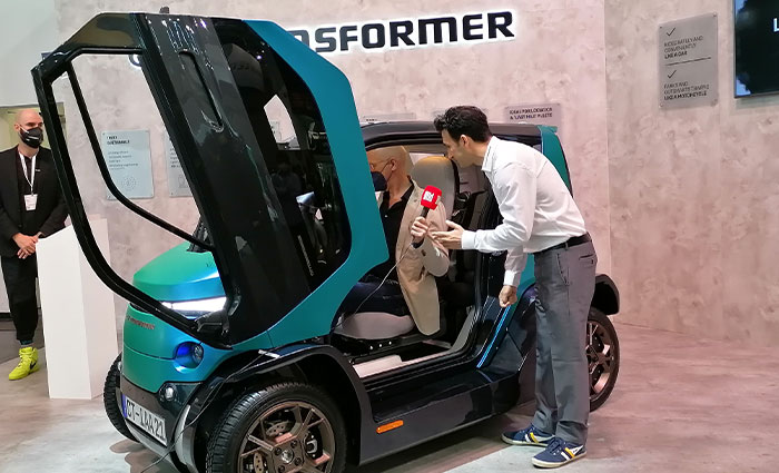 普通の小型電気自動車に見えますが、小型で折り畳み可能。 小型ながら90km/時速を実現しているうえに、今後の駆動システムの改良と変更も試作中の注目すべきメーカーのひとつでした。