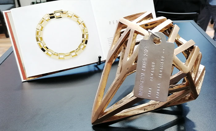 INHORGENTA AWARD 2023のFINE JEWELRY部門受賞者BINDER Jewellery 。 元々はチェーンメイカーだったBinderから新しく企画されたジュエリーブランドの鍵となる商品が受賞しました。 Perceptionコレクションは、18金と純銀の合金で手に取ると水が流れるような滑らかな動きが魅力です。