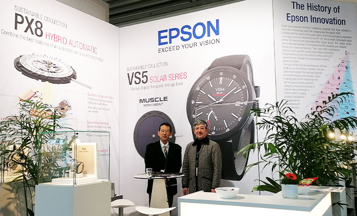 EPSONからは、今年の主力商品としてサステナブルコレクションを主に展示。 ソーラーウォッチのメリットは意外とどこででも耳にしますが、実際に使ってみると「いつ充電切れるんだろう」「冬のドイツ(日光出ない)で無理」となんとなくネガティブなイメージがないでしょうか?