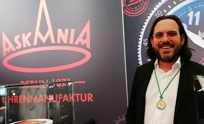 ベルリンの1871年から続く老舗ウオッチメーカー Askania 。手巻きムーブメントを搭載した懐中時計から始まり、1876年には海外の見本市に出展したり、1935年にはカメラの製造も手がけて世界初の携帯型肩掛けカメラを製作するなど、かなり先進的な視点とイノベーティブなメーカー魂が受け継がれています。