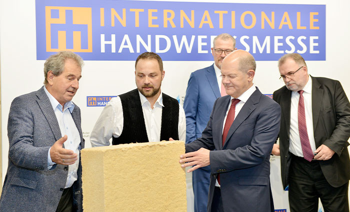 特にオラフ・ショルツ連邦首相、ロベルト・ハーベック連邦大臣、マルクス・セーダー首相など著名な政治家の訪問も見られました。 未来への課題となる専門職人の後継者不足問題やマイスター不足の問題。 またエネルギー問題に直面した現在だからこそ、マイスターのニーズと彼らにしか解決できない技術的な問題などの重要性が再度見直され、政治家たちとマイスターとの交流が見られた非常に貴重な開催年となりました。
