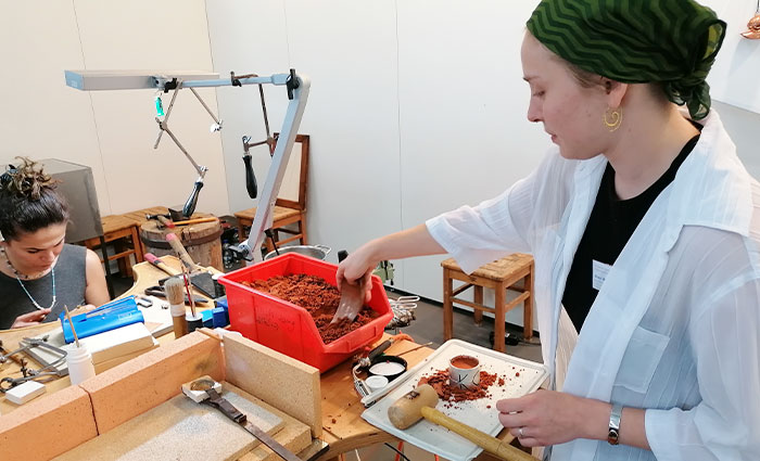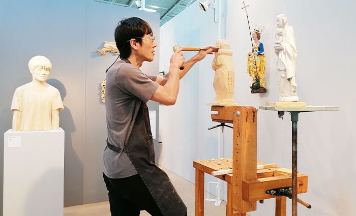 元々はアートとは少し離れた業界から一転、ドイツで彫刻を学んで彫刻家として活躍している宮川滋行さんもデモンストレーションをおこなっていました。 彫刻を学ぶレッスンも希望があれば受けてくださる、とのこと。