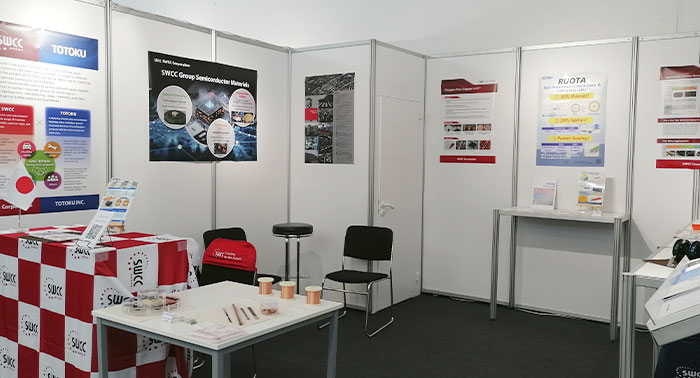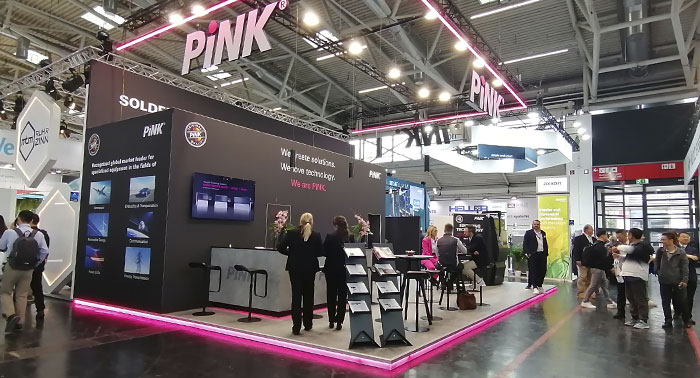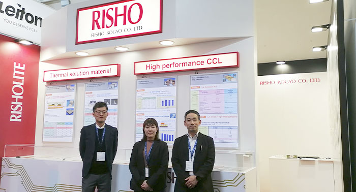 RISHO 利晶工業もproductronicaでは馴染みの出展社です。壁面にプリントされた製品説明がすっきりとわかりやすく、商品について説明を行いやすいので見込み客へのPRが可能です。顧客とはざわついた会場から離れて商談を目的としたスペースも確保。今回は、RISHOLITE®(Copper Clad Laminates) — プリント基板向け銅張積層板(CCL)などを展示紹介していました。